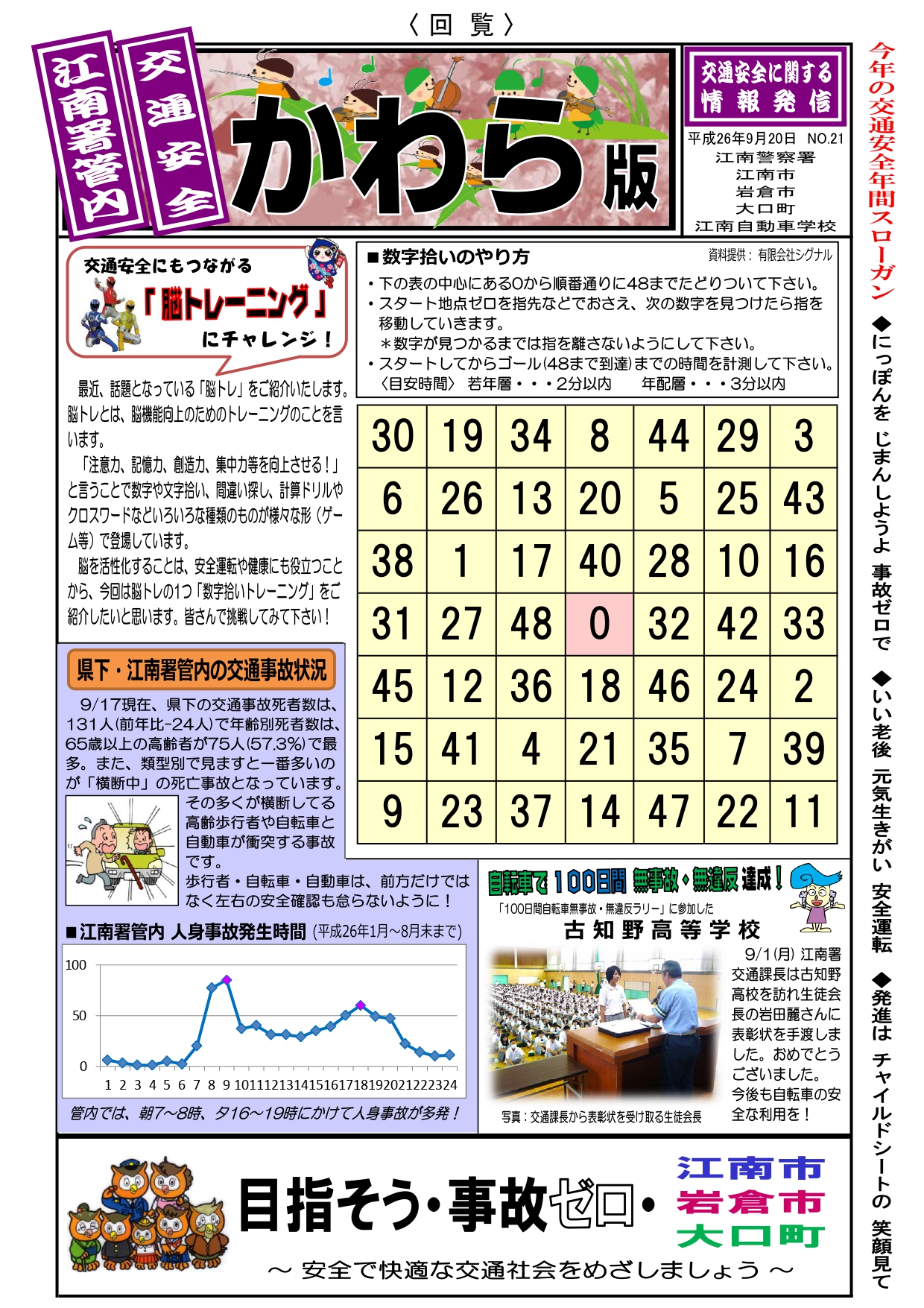 脳トレにチャレンジ&県下・江南署管内の交通事故状況!