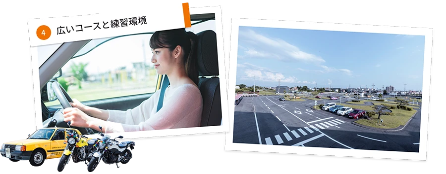 16,877平方メートルの敷地に10,888平方メートルのコースが造成され、のびのびと練習ができます。路上コースは名古屋市内のような恒常的渋滞もなくスムーズな練習走行が可能になっています。