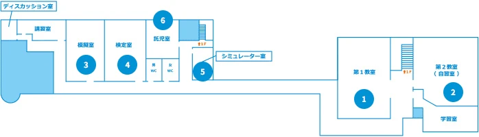 パソコン、DVD、パワーポイント、プロジェクターを駆使して正確かつ速やかに、内容の理解を深められるシステムを採用、学習に不得手な方や時間に余裕のない方も安心して学科を進められます。
