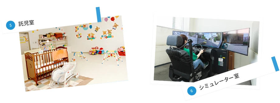 コース内の運転練習へ入る前に室内で模擬的に運転を体験、以後の運転上達に貢献しています。