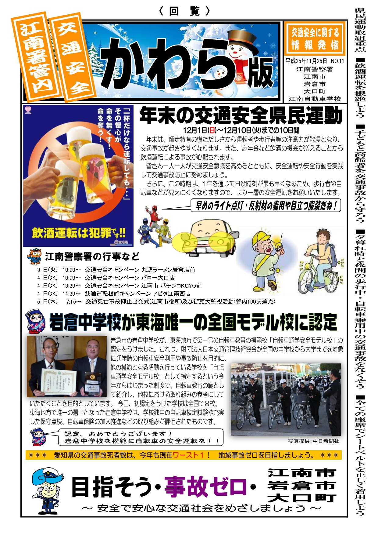 12月1日~12月10日までの10日間、年末の交通安全県民運動!