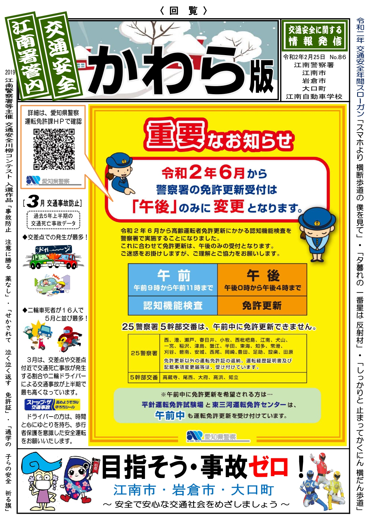 令和2年6月から警察署の免許更新受付は「午後」のみに変更となります。